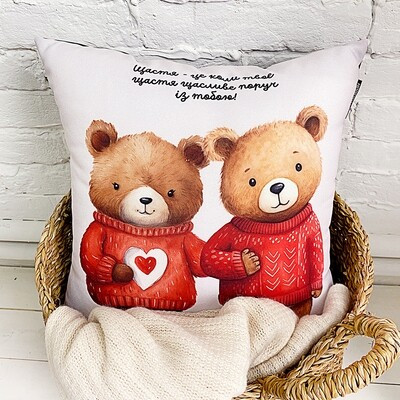 Подушка з принтом 50x50 см «Щастя - це коли твоє щастя щасливе поруч із тобою»